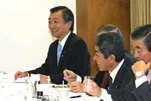 最後に、きょう予算の財務省原案が出されていると思います。正直、きょう相沢英之先生がおられたら聞いてみたいと思ってましたが、昔と恐ろしく様変わりしたような形になっているんだと存じます。昔であれば、予算は、27日とか28日と最後まで引っ張ったもので、よくないなと思ってたんで、私が担当のときは、さっさと一発内示ということをさせていただいて、いくつか蹴らせていただいたものもあるんですが、だんだん、だんだん短くなってきたような感じがします。今は、よく言えば磨かれてきたとか、スマートな形になってきたんだと思ってますけど、いずれにしても83兆5000億というものが、今、内示されていますけど、ぜひ我々としては、財政再建もやらなければならない、景気の刺激策もやらなければならない、無駄もやめなければならない、いろんな連立方程式を解いていく立場にいるんですけど、ぜひ、皆さんとともに、こうしたものをきちんとつくり上げて、将来の方向性として間違っていない形で、景気の対策もきちんとやってます、無駄も排しています、そして財政再建もきちんと進めていますという難しい話をやった上でないと、消費税など何の話にしても、なかなか先に進めないと思ってますんで、きちんと論理構成の上からも対応していく必要があると思っています。