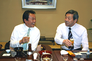 6月5日に開催される予定の「為公会」パーティーの準備状況について報告し、第1回目の初パーティーなので趣向を凝らしたものにしたいと、その企画について説明しました。麻生さんの答えは「いいんじゃないの、やってごらん」。いつもそうなのですが、麻生さんの人心掌握術は、「提案、意見をつぶさない。なんでもやらせる。失敗したら責任を背負う」なのです。今日の党首討論で、元気一杯の安倍総理の方が一本勝ちと受け止めた麻生さんは上機嫌。ついでに私の提案もOK!、でした。