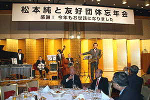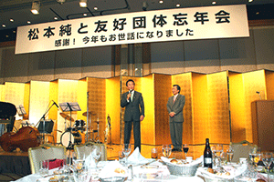 学芸会のような忘年会でしたが、皆さん我慢してお付き合いいただきました。無事に終わり、軽音楽隊「松純一座」もホッと一息。今日のお客様は、これまでの私の人生に大きな刺激を与えてくれた、先輩・同僚議員、記者さん、小学校の恩師、同級生、薬剤師仲間、JCOB、企業活動や地域活動に熱心に取り組んでいるリーダーなどなど、たくさんの仲間が集いました。一生付き合っていただきたい、私にとって大切な友人ばかりです。大事に大事にこの友情をさらに育んで行きたいと改めて思いました。