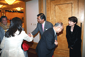 奥様も大活躍。麻生大臣も普段と違う笑顔で御夫妻分担されて全テーブルを回って新年のご挨拶です。