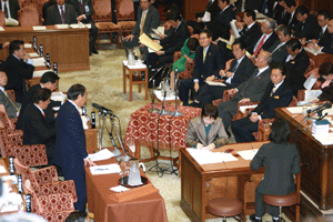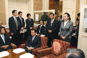 我が自民党神奈川県連の会長である菅義偉先生の質疑の傍聴のため予算委員会に入りました。ご自分が総務大臣経験者でもあることから「郵政人事」についての質疑が行われました。今般の人事が「天下り・わたり」にあたり、総選挙時の民主党主張と矛盾するのではないかとの追求に、鳩山総理はじめ閣僚の答弁は明快な納得する説明には至らなかったように私には思えました。