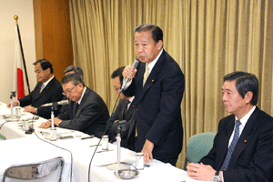 川崎国対委員長から今般の国会の流れについて説明がなされ、今後の対応方法が説明されました。引き続き、谷垣総裁から一致結束して対応していこうと呼びかけられました。求めている@予算委員会の集中審議(デフレ・円高への景気対策、普天間問題・外交安保、鳩山総理・小沢幹事長の政治とカネ)、A一度も開かれていない党首討論の早期開催、B参院決算委員会の総括質疑、を審議するために12月18日までの大幅会期延長を申し入れ、答えが無い場合には断固抗議し、一方的に進める国会審議には応じられない、という結論でした。