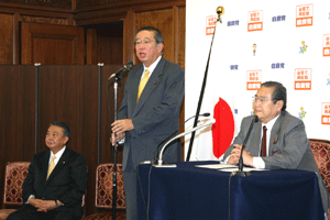 19日から国会が動かず止まった状況で、与野党の国対委員長会談などが断続的に開催されており、いかに早く正常化できるか努力しているところです。先週の自転車事故から心配されていた谷垣総裁もお元気な顔を見せてくれました。一致結束して国会運営に当たって欲しいとの挨拶がなされました。