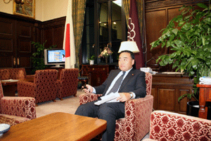 なぜ民主党が会期内の採決にこだわり、強行手段で本会議採決を求めているのか分かりません。通常の審議は行われておらず、まだ採決に入るには早いのです。幹事長室では大島理森幹事長が国対や議運理事の動きを確認しながら、適切な国会運営が出来るよう必死に調整が行われていました。