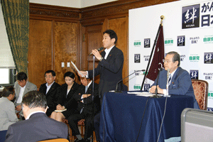 はじめに岸田文雄国対委員長から民主党の小沢グループの造反・離党による国会空転について経過説明がなされました。引き続き高木毅議運理事より本日の本会議の議事日程が報告され、代議士会で了承されました。また岩屋毅代議士からは地元大分の大雨災害対策について、そして河野太郎代議士からは一年間の役職停止処分が明けたことの報告とお詫び・決意表明がありました。