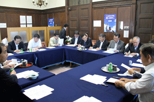 Q.一体改革の法案ですが、自民党の谷垣総裁も公明党の山口代表もお盆前の採決が望ましいと確認なり言及されていますが、会長自身も審議時間や流れも見ながらお盆前が望ましいと思われますか。 |