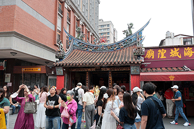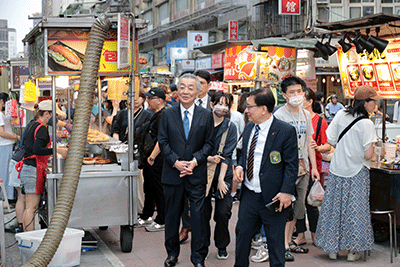 昼食懇談会後、台北市〜新北市内を観光。淡水、華山、錦町、迪化街を散策しました。淡水は台北を流れる淡水河の河口に開けた港町で17世紀にスペイン、オランダが上陸し19世紀にはイギリス領事館が置かれるなど古くから西洋文化が入っておりその影響もあり異国情緒が漂う街でした。