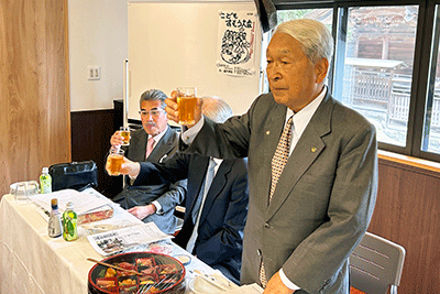 聖光学院6期生の大村剛一氏(63年間の付き合い)をリーダーとしたブルーミング中西元専務・中西國容氏(故人)を囲む「國容会」のメンバーに私の受章を祝い夕食懇談会を開いていただきました。懐かしい顔が揃いました。料理店からもお祝いの花束をいただくなど楽しい会話の時間でした。これからも友情を大切にしようと、「老骨に鞭打つゴルフコンペ」の計画が持ち上がりました。(純)