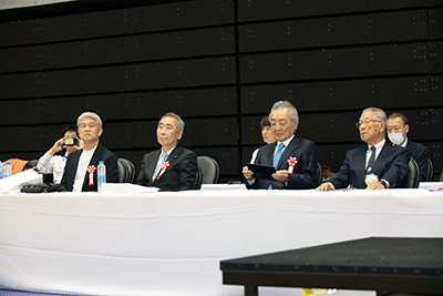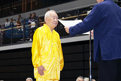 日本太極拳友会交流演舞大会が横浜武道館「メインアリーナ」にて開催されました。開会宣言に続き三代正廣会長が開会挨拶をされ、その後、各種表彰が行われました。次に来賓挨拶となり世界永年太極拳連盟・傳清泉主席より祝辞が述べられ、引き続き、松本純名誉会長が挨拶し、「本日は交流大会のご開催おめでとうございます。また大会関係者の皆様のご尽力に敬意と感謝を申し上げます。三代会長とは34年のお付き合いをさせていただいております。その間、ずっと一貫して仰っている言葉がありまして忘れる事が出来ません。その言葉は『自分と向き合い、自然をみつめ敬意を払いながら、命のエネルギーを生み出していく、人知れぬ努力はおのずとその人の風格や自信となって現れる』これは太極拳だけにとどまらず人の生き方そのものにも通じるものだと思っております。そして太極拳そのものが世界の平和に貢献するものと確信しておりますし皆様が更に精進をされ、それぞれの技術の向上がなされる事をご祈念申し上げます」と述べました。続いて松本研顧問からも祝辞が述べられ、矢島孝一郎大会実行委員長から各団体の来賓紹介がなされました。オープニング演舞はジュニア長拳、24式太極拳集団などの演舞が行われました。(秘書白石報告)