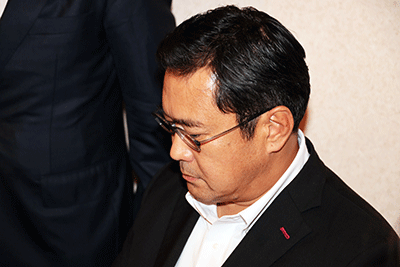 ▼甲斐誠氏より市議、支援者にお詫びと感謝の挨拶がなされた
