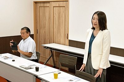 瀬戸神社神輿保存会・金澤扇會の例会が瀬戸神社社務所で開かれました。同會・青木博幸會長の開会挨拶に続いて顧問挨拶となり、黒川まさる市議に続いて松本純事務所より「松本純レポート」を配布した内容と自民党・石破茂総裁辞意表明によって同党総裁選挙が行われる旨を報告しました。そして、松本後任として自民党神奈川1区支部・丸尾なつ子支部長をご紹介しました。丸尾支部長からは松本後任として地域活動と絆を大切に皆さんの声を国政に届けられるよう活動して行く思いをお伝えしました。この後、例会報告と協議、意見交換が行われました。(秘書森報告)