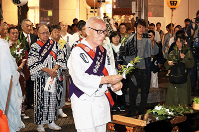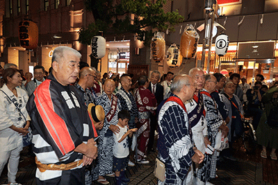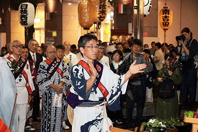 式典では、松本研市議会議員による横浜市歌斉唱の後、主催者を代表して年番町内会である宮川町町内会副会長の三橋やまと氏よりご挨拶がありました。来賓として永井由香中区長からご挨拶をいただきました。松本研市会議員ならびに中区第一北部連合町内会・神田信男会長から挨拶がありました。続いて、本日欠席の原聡祐県会議員からの祝電が披露されました。