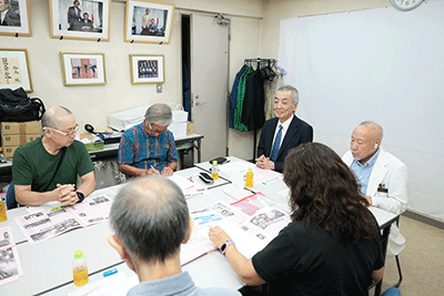 野毛地区街づくり会の今年度の広報紙・野毛地区街づくり新聞を発行するための打合せ会が我が事務所で開かれました。毎年の予算決算概要の報告とtラスト申請の受付け告知、さらに松本純が新たに会長就任した報告などが紙面に掲載されます。そして新会長の紹介として松本純の旭日大綬章受章についても書かれるとのことで、それに使える写真が求められ、過去のデータから引っ張り出しました。(純)