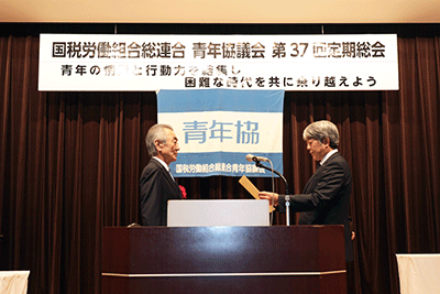 国税労働組合総連合会・青年協議会第37回定期総会が星稜会館で行われ松本純がお招きいただきました。