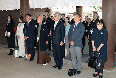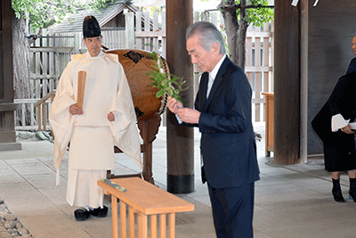 伊勢山皇大神宮居合道奉納演武が行われ顧問の松本純が出席しました。始めに本殿前にて報告祭となり、神官による祝詞奏上に続いて松本純が玉串を奉奠し奉納演武会の安全と発展を祈願いたしました。松本の後任となる自民党神奈川1区支部・丸尾なつ子支部長も出席され玉串を奉奠いたしました。続いて同じく顧問市議、顧問前市議、選挙区国会議員代理、金沢区文化協会・阿部きみえ氏、奉納演武会実行委員・田學道代表が玉串を奉奠されました。
