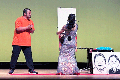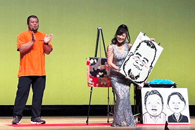 また、野毛大道芸でもお馴染みの桜小路藤丸さんによる似顔絵パフォーマンスはとても楽しく皆さん楽しんでいらっしゃいました。