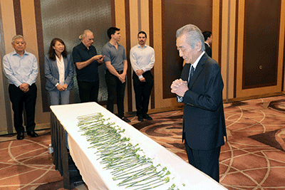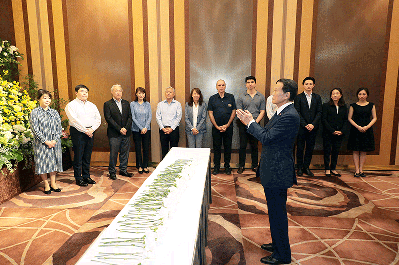横浜青年会議所第41代理事長・1995年度国際青年会議所JCI会頭を務められた『王子英を偲ぶ会』がローズホテル横浜で執り行われました。松本純は同じ横浜青年会議所時代の仲間として出席し、故人を偲び献花をいたしました。また公務多忙の中、日本青年会議所会頭(1978年)を務められていた自民党・麻生太郎最高顧問も弔問され献花の後、会場で多くの方々と王子氏の功績を偲ばれました。王子氏は横浜中華街「北京飯店」の代表として横浜中華街の景観整備、防災対策、バリアフリー化を推進され横浜屈指の観光地として発展に大きく寄与されました。2023年に同店・代表取締役会長に就任されたのですが今年7月に急逝されました。謹んでご冥福をお祈りいたします。(秘書森報告)