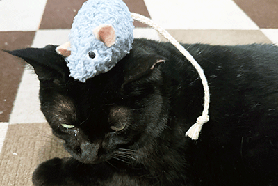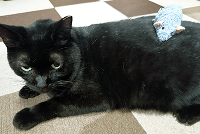 一方、我が家の愛猫クロは呑気なものです。ネズミのオモチャに嘗められても、お友達のようにお友達とでも思っているのでしょうか、緊張感は無し。一緒にテレビを観ていたのですが、お腹が空けばカリカリ、心配ない優雅な生活を楽しんでいます。