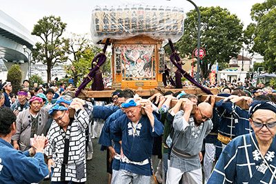 2025金沢八景神輿パレード開会式が金沢八景駅へ続く高架下広場で行われました。神輿パレードは金沢区政70周年記念として行われた2019年以来となり、各地区から9基の神輿が金沢八景公園から金沢八景駅に向かう平潟湾沿いの道路を通行止めにして渡御が行われます。神輿パレードの実行委員長を務める六一神輿保存会・菅谷翔会長は、パレードをで神輿を継承しながら地元を、金沢区を元気にしたいと構想を温めて来ました。この度、地元商店会や多くの協賛者、警察が協力して賑やかで活力のある神輿パレードが行われることになりました。開会式で菅谷実行委員長は「このパレードが継続出来るか否か、皆さんの協力が必要です。トラブルを起こした団体や関係者はその場でお帰りいただくことになります。皆さんくれぐれもルールを守ってパレードを盛り上げて行きましょう」とご挨拶されました。続いて地元商店会と神輿パレード実行委員会顧問の選挙区国会議員と県市議が挨拶を行いました。松本純代理として一言、神輿パレード開催のお祝いを申し上げました。開会式後の1200からは金沢八景公園で出御祭が行われ、顧問議員の挨拶に続いて神輿団体代表の紹介が行われた後、10基の神輿による渡御が行われました。沿道や金沢八景駅周りは多くの人たちが渡御に歓声をあげ、平潟湾沿いの出店や金沢八景公園、高架下の出店も大賑わいとなりました。(秘書森報告)