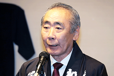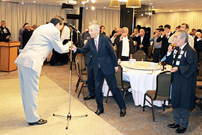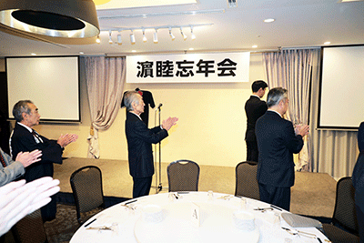 濱睦の忘年会がブリーズベイホテルで開かれました。開会冒頭に逝去された会員の澤野陽一郎氏に黙祷が捧げられました。続いて青木亮会長より「本年も無事にお祭りが出来ました。来年も濱睦をよろしくお願いします」と挨拶がなされ、来賓挨拶では伊勢山皇大神宮、神奈川県神輿保存会会長・濱睦筆頭顧問の鈴木正弘氏、顧問の松本純の挨拶となり、挨拶の前に旭日大綬章受章のお祝いとして松本へ花束の贈呈が行われました。松本は花束の贈呈に感謝を申し上げ「旭日大綬章は全国で12名の 日本人の方が受章され、その中の1人なのですが、12月1日に受章祝賀会を開催し大勢の方々にご出席をいただきました。祝賀会でも申し上げましたが、小さい時に出会った方たち、やんちゃなわんぱくな頃の友達、その積み重ね一つ一つが走馬灯のように 目に浮かぶ皆様との祝賀会になりました。澤野(陽一郎)さんが亡くなって非常に残念ですが誰もが生き続けられる訳ではありません。限られた人生の中で出会いというものの大切さをつくづく感じました。この神輿会を通じて多くの仲間が更に幸せになるよう、そして国家が発展できるよう、我々は微力ではありますが地域を支え伝統文化を伝承して行く思いを噛み締め ていきたいと思います。今日の忘年会は多くの友好団体はじめ皆さまが参加されています。出会って語らう大切さを喜びに変えて楽しい一時となりますようお祈り申し上げます」と挨拶いたしました。続いて松本研市議、原聡祐県議、野毛地区連合青年会・古正和也副会長の挨拶があり、友好団体の金澤八幡神社寺前睦・斉田長二会長代行の乾杯の発声で歓談となりました。(秘書森報告)