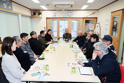 吉田町町内会・名店街会役員会・市況研究会が吉田町町内会館で開かれました。同町内会・荒井浩会長や名店街会・山下大輔理事長、役員の皆さんに松本純レポートNo.12をお配りし、出席した松本純はレポートの誌面で報告している12月1日に開催した旭日大綬章受章祝賀会の模様を報告しました。「色々な歴史があって町が出来あがっていることを感じます。出会いを大切にして、そして皆んなで一緒に力を合わせて行くことは大事で、それを70数年続けて来たことを総括して、この祝賀会を開催しました。国会議員も多く来ていただきました。やりたい政策を形にして行くには1人では事は運びません。やはり地域の皆さんの声を集約して、力を合わせて政治の中で政策を実現して行く事の繰り返しなるんだと思います。それには政権サイドにいるということが何より政策実現が近くなることに繋がります」と挨拶し、無事に祝賀会が終わった報告と感謝を述べられました。市況研究会には松本研市議と自民党神奈川1区支部・丸尾なつ子支部長も出席されました。(秘書森報告)