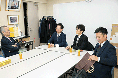 神奈川県医師連盟の鈴木紳一郎委員長、磯崎哲男委員長代行らが来訪され、年末のご挨拶とともに、間もなく決定される来年度診療報酬改定などについて意見交換が行われました。現場での職能を如何に発揮し、国民・患者の命を守ることができるか真剣な議論が続きました。(純)