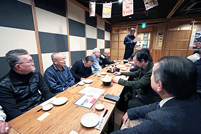 瀬戸神社神輿保存会・金澤扇會の納会が「炉端かば金沢文庫店」で開かれました。同會・青木博幸會長より友好団体と會員の方々に1年間の慰労と感謝が述べられ、大晦日には瀬戸神社から神輿渡御が行われるので参加のお願いがなされました。続いて同會・横溝初代會長、瀬戸神社・佐野和史宮司、友好団体代表の京濱連合・堀越祐司会長、町屋睦・酒井弘雅会長、地元友好団体代表として六一・菅谷翔会長が挨拶をいたしました。顧問議員挨拶では初めに松本純代理としてご紹介があり、今春、松本が旭日大綬章受章の栄に浴したお祝いに花束贈呈があり、本人代理として花束を受け取りました。挨拶では松本の近況をお伝えし社会保障制度の堅持、若手議員の育成、拉致問題解決に向け現職議員と連携し尽力して行く旨をお伝えしました。続いて黒川まさる市議、大村悠県議、自民党神奈川1区支部・丸尾なつ子支部長代理の東谷啓吾秘書が挨拶を行い、同會・小糸泰次相談役の挨拶と乾杯の発声で歓談となりました。(秘書森報告)