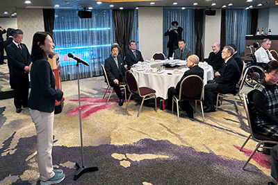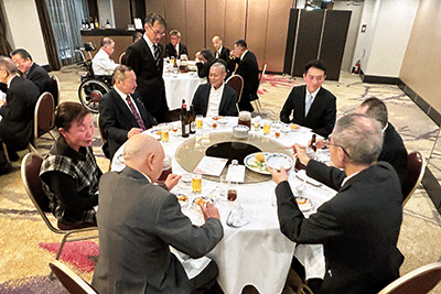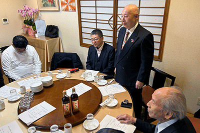 神奈川県日華親善協会役員忘年会が同会・施梨鵬副会長のお店「富筵」で開かれました。李潤華事務局長の司会で始まり、同会・三谷輝夫理事長の開会挨拶に続いて横濱華僑總会・許耀庚会長の来賓挨拶がなされました。続いて同会会長を務める松本純代理挨拶となり、役員の方々に1年間の活動にたいして慰労と感謝をお伝えし同協会の更なる発展を祈念申し上げました。続いて田中和徳名誉会長代理秘書、中西健治会長代行代理秘書の挨拶の後、藤代耕一筆頭副会長の挨拶と乾杯の発声で歓談となりました。(秘書森報告)