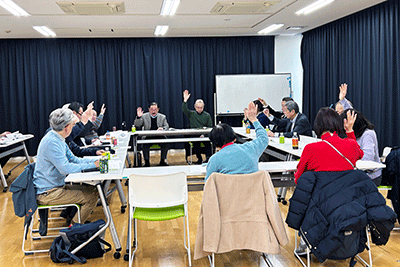 野毛地区街づくり会理事会が野毛Hana Hanaで開かれました。高橋洋一事務局長の司会で始まり定速数の確認と理事会成立の報告が行われました。続いて同会会長を務める松本純が都合により欠席のため、田井昌伸副会長より「年末もあと10日余りとなった忙しい時期に、早朝からお集まりいただきありがとうございます。今年度いろいろありましたが、今日は会長不在ですので皆さん(緊張なく)伸び伸びとやっていただければと思います(笑)。今日は議題も多くありますのでスムーズに進行したいと思いますのでご協力よろしくお願いいたします」とご挨拶されました。続いて神田正副会長が議長に選任され、@令和8年野毛大道芸A大岡川水上劇場B令和8年度広報活動事業の報告と収支決算が承認されました。続いて、にぎわい座利用促進委員会から委員会承認事項の報告がなされ、全ての議案が承認され閉会となりました。(秘書森報告)