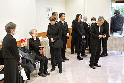 野毛二丁目町内会員で金光教野毛教会の鈴木重光氏が逝去されお通夜が本覺寺で営まれ真純夫人と共に弔問しました。真純夫人は野毛二丁目町内会長として弔問し喪主を務める信子夫人にお悔やみを申し上げ鈴木氏のご冥福をお祈りいたしました。また、信子夫人には野毛地区街づくり会や神奈川県鮨商生活衛生同業組合でお世話になっています。(秘書森報告)