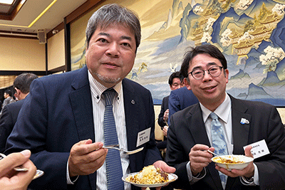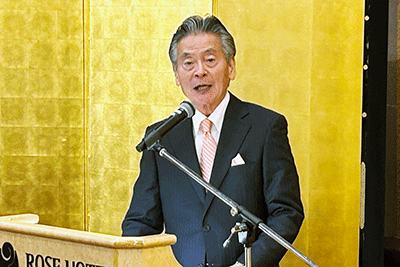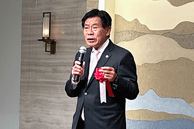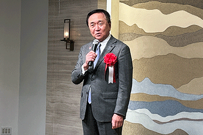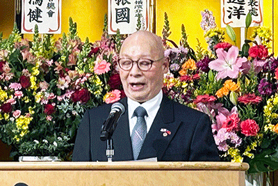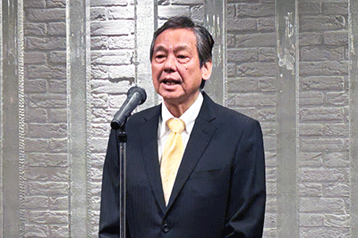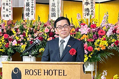 続いて台北駐日經濟文化代表處・李逸洋大使、神奈川県・橋本和也副知事、横浜市・山下朋美国際局長、台北駐日經濟文化代表處横濱分處・范振國總領事が祝辞を述べられました。続いて国会議員紹介、日華・台北議員連盟会長の紹介挨拶があり、元衆議院議員・松本純代理として紹介がありました。続いて横濱中華學院・羅鴻健理事長の乾杯の発声で歓談となりました。
