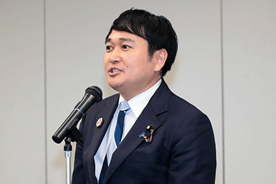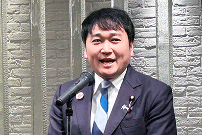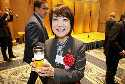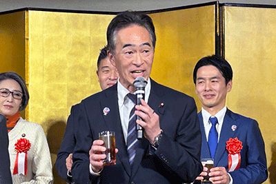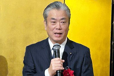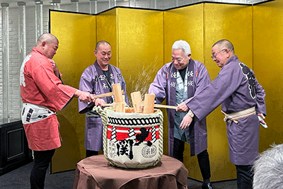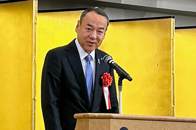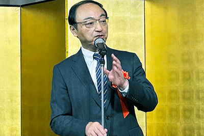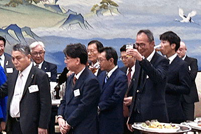 次に高市早苗・内閣総理大臣の新年メッセージが披露され、上野賢一郎・厚生労働大臣他の来賓ご挨拶と続きました。そして厚生労働大臣、政党代表、友誼団体他の皆さまによってめでたく鏡開きが行われ、浜田晋吾・日本生協連虹の会会長のご発声で乾杯、歓談となりました。(秘書鈴木報告)