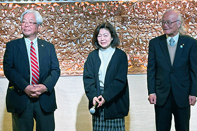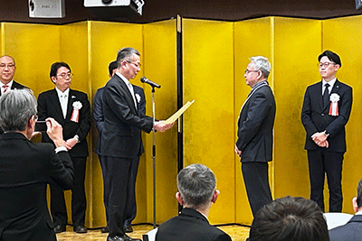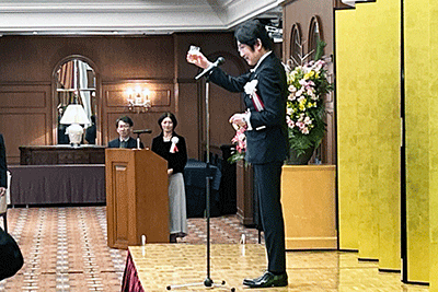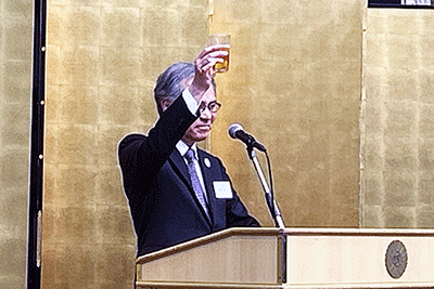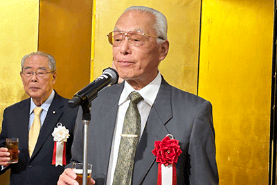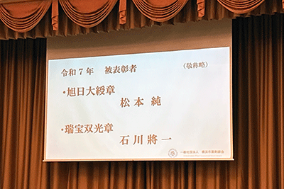 次に様々な表彰者が紹介され、松本純の旭日大綬章受章も報告されました。神奈川県保健衛生表彰知事表彰を受けた永持健氏が、代表して坂本会長から賞状を授与されました。寺師三千彦・顧問のご発声で乾杯が行われた後、和やかに歓談となりました。(秘書鈴木報告)