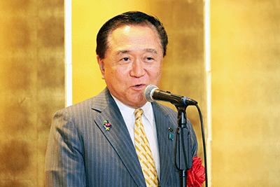 続く来賓挨拶では、黒岩祐治・神奈川県知事、長田進治・神奈川県議会議長、鈴木紳一郎・神奈川県医師会会長、守屋義雄・神奈川県歯科医師会会長、岩月進・日本薬剤師会会長が祝辞を述べました。次に福嶋仁・神奈川県薬剤師連盟会長のご発声により乾杯が行われ、懇談となりました。懇談の間で国会議員他の紹介もなされ、薬業団体会員の皆様との親睦が図られました。(秘書鈴木報告)