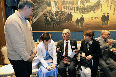 歓談の中、李大使、范總領事と羅理事長、許会長に新年ご挨拶をし、李大使は「松本先生によろしくお伝えください。一緒に写真撮りましょう」と言ってご夫妻と共に写真撮影となりました。(秘書森報告)