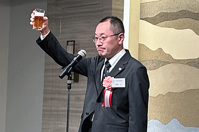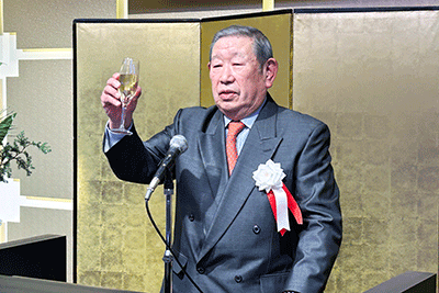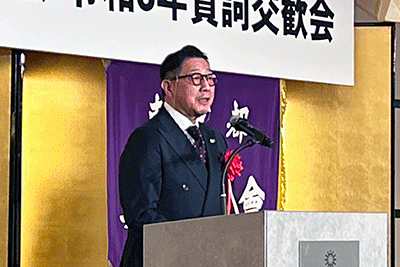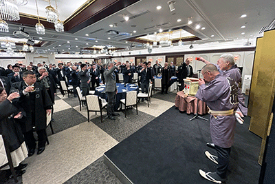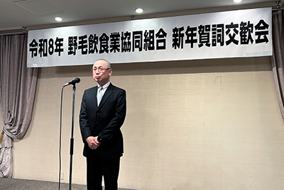 野毛飲食業協同組合令和8年新年賀詞交歓会がブリーズベイホテルで開かれました。同協同組合・谷川不二映総務部長の司会で福田雄次理事から開会の辞がなされました。