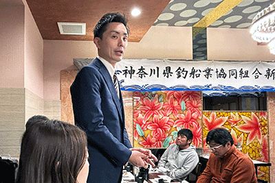 神奈川県釣船業協同組合新年会が「せんざん本店」で開催されました。同組合・一之瀬遥斗幹事の司会で開会されました。