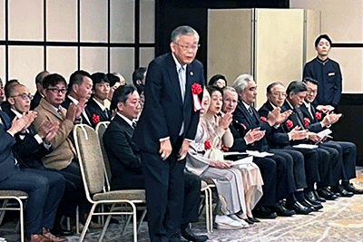 信じられない急逝にただ驚くばかり。昨年12月1日の私の旭日大綬章受章祝賀会にはご来賓としてご出席いただき、楽しいひと時を共にしたばかりのことです。心から感謝しご冥福をお祈り申し上げます。(純)