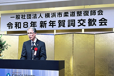 令和8年神奈川県薬業団体新年賀詞交換会がヨコハマグランドインターコンチネンタルホテルで開催されました。山田裕之・神奈川県病院薬剤師会会長の開会の辞に続き、薬業団体代表として長津雅則・神奈川県薬剤師会会長より以下の挨拶がなされました。