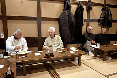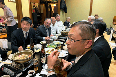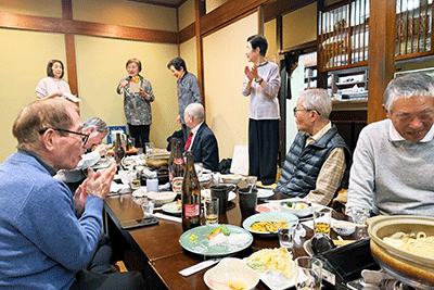JUN CLUBの南雲誠司会長は「長年、天吉で定例会をやって来ましたが今月例会で最後となります。定例会は2月から4月まで休会し、5月から新店舗で行います。ここで(現所在地)再び営業が始まるのは5年後となるので、皆さん、それまで元気で頑張りましょうね」とご挨拶されました。幹事役の杉山さんはちょっと力抜けのご様子。本当にお疲れさまでした。