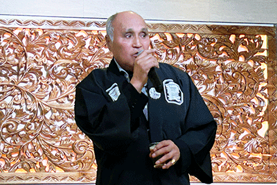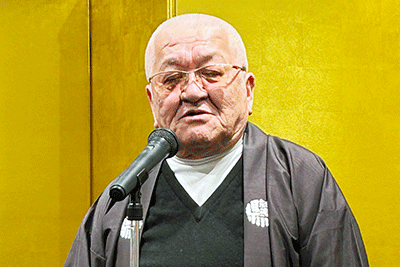 寺前睦・木川勲会長は欠席でしたが、斉田長二会長代行より「各神輿会・各団体の皆様、新年明けましておめでとうございます。本来であれば皆様方と新年を祝う新年会に参加したかったのですが、あいにく治療の為、今回は欠席させていただきます。皆様との交流は私にとってかけがえのないものです。直接ご挨拶できないのは残念ですが、皆様が素晴らしい新年を迎えられた事を心よりお祝い申し上げます」と会長メッセージを代読されました。