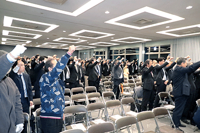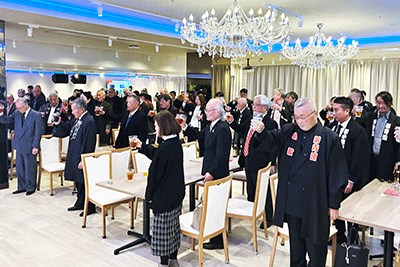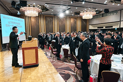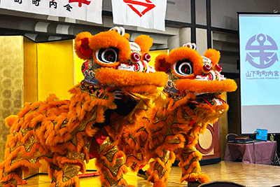 2026山下町町内会新年賀詞交換会がローズホテル横浜で開催されました。国歌斉唱に続いて開会の辞、獅子舞演舞が行われました。