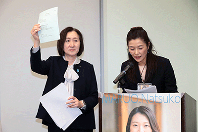続いて松本純代理として真純夫人が前神奈川1区支部長松本純からのメッセージを代読しました。