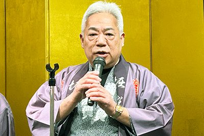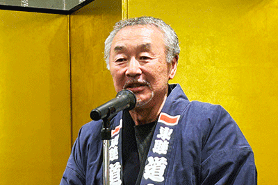 田井昌伸理事長から「平日の午後というお忙しい時間に盛大にご臨席を賜りありがとうございます。野毛の町もご多分に漏れず昨年の暮れから年始にかけて沢山の人出でした。開いてる店は暮れから三が日はほぼ満席で、これも日頃からの皆さまのお力添えだと思っています。ただ、関内北口近辺、それから市役所跡と大規模な再開発がこれから続き、4〜5年後に開業となって来ると思います。あれだけ大きなモノが出来ると人の流れはガラッと変わって来ると思います。北仲も再開発でどんどんビルが建って行くと人の流れがホントに読めない状況となります。野毛も黙っていてもお客様が来てくれている今の状況が続くのかと思うと、そんなことは決して無いのかなと思っています。野毛の名前を1番に売るには野毛大道芸が大きいと思っています。野毛大道芸を開催するにあたり皆様のご協力が必要となりますのでご協力よろしくお願いいたします。当組合の特別顧問を務める松本純先生がご欠席ですが、街づくりの会長になられたばかりで残念ですが早く体調を戻されてご活躍をいただきながら、我々と共に野毛を盛り上げて、何年先までお客様が来ていただける街を作りたいと思っています」と年頭挨拶を述べられました。
