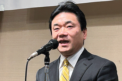 続いて堀越祐司会長より「皆さま新年明けましておめでとうございます。連合も新しくなりました。新旧交代したところで皆さまに一つだけお願いがあります。皆さまにはご指導ご鞭撻をいただいていますが、そこにもう一つ、叱咤激励を加えていただき私どもにムチを入れていただきたいと思います」と新年のご挨拶がありました。
