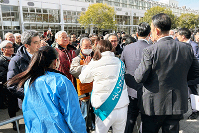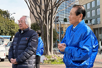 並木相鉄ローゼン〜シーサイドタウン船だまりで辻立ちを行いました。郵便局長たちに偶然お会いし激励されました。(秘書森報告)