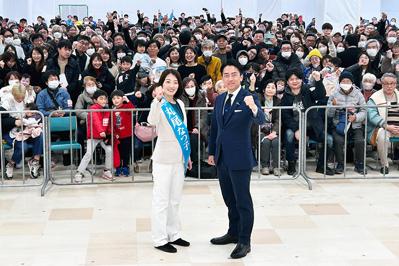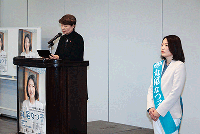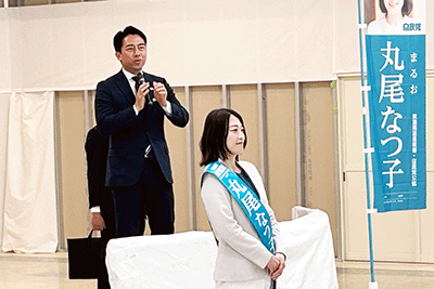 選挙戦最終日、並木のビアレヨコハマで小泉進次郎防衛大臣を応援弁士に招いて丸尾なつ子候補の最後の個人演説会が行われました。丸尾候補は力強く決意を訴え、小泉大臣からは激励と応援を受けました。(秘書森報告)