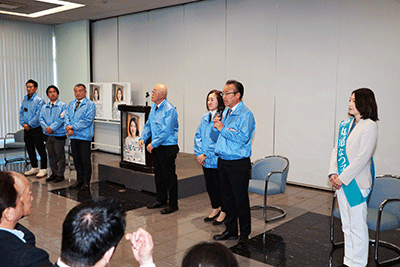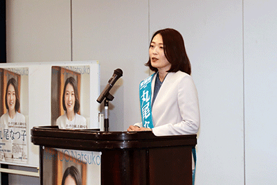 丸尾なつ子候補の個人演説会が真照寺で行われました。主催は松本純を支える会・純風会で、水谷栄寛会長より「ここで個人演説会を行うのは確か松本純さんと今回の丸尾なつ子さんだけだと思います」と皆さんに話され、丸尾候補の紹介と激励がなされました。丸尾候補は松本純の後任として国政に臨む強い決意を訴えられ、出席した方々から激励を受けました。(秘書森報告)