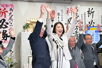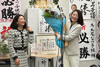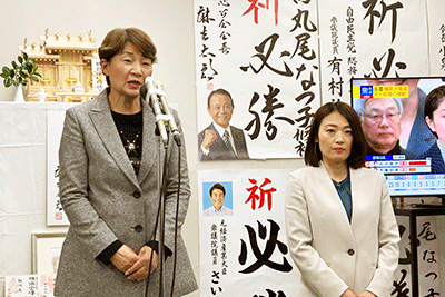 第51回衆議院解散総選挙で自民党神奈川1区・丸尾なつ子候補の初当選が決まりました。NHKの開票速報開始し早々、画面に当選確実が速報され歓声と拍手が湧き上がりました。