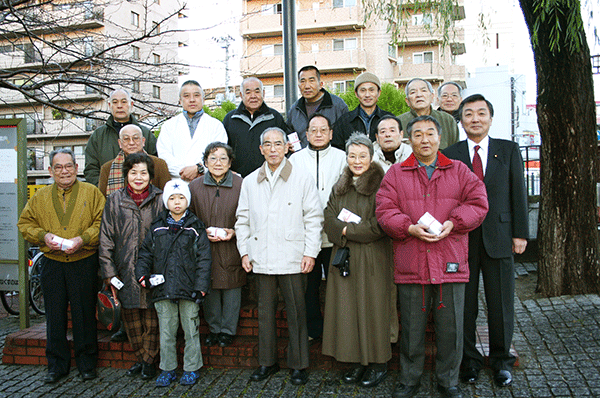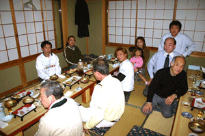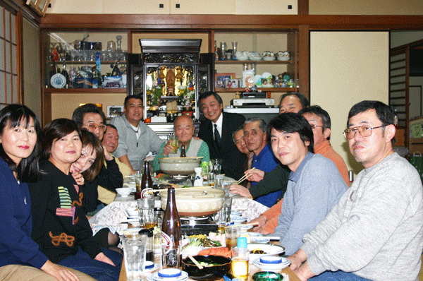 今日の最終新年会は伊勢佐木町5丁目でした。ここも町内会員でもある老舗「じゃのめや」さんが会場となりました。すき焼き会食で皆さんたらふく満足。話題は風俗店の対応です。求める大人が悪いのか、縛ることができない法制度が悪いのか、いずれにしても青少年に対しては教育上よろしくない訳で、家族ずれで楽しんで欲しい伊勢佐木町の街づくりにとっては頭の痛い問題です。所轄の伊勢崎警察署が警察庁長官の視察による環境浄化に努力し、関連する犯罪防止に躍起なっているのですが、効果を挙げたというところまでは達していないようです。私たち自民党国会議員も治安対策を公約に掲げ、平成17年度予算では警察官の増員などの予算獲得に成功していますが、現場で皆さんに見える形での具体的施策をも検討していきたいと思いました。